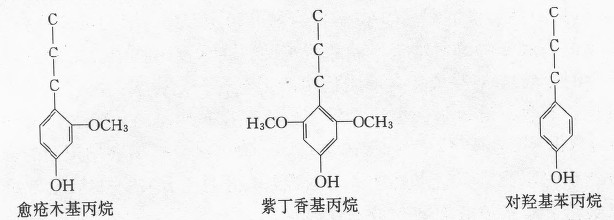 木質(zhì)素為纖維素的伴生物,在木質(zhì)纖維中與半纖維素共同組成結(jié)殼物質(zhì),存在于胞間層與細(xì)胞壁上微纖維之間。木質(zhì)素的一部分與半纖維素之間存在化學(xué)聯(lián)接。木質(zhì)素是一群物質(zhì)的總稱,各種材種的化學(xué)結(jié)構(gòu)均有不同之處,就是同一種植物中各類細(xì)胞中的木質(zhì)素結(jié)構(gòu)也有差異。至今,還沒有一個方法能把木質(zhì)素從植物的組織中完整地、沒有任何變化地分離出來。因此,木質(zhì)素結(jié)構(gòu)的分析和性質(zhì)研究異常困難。一般認(rèn)為,木質(zhì)素是具有芳香族特性的非結(jié)晶的、具有三度空間結(jié)構(gòu)的高聚物。其基本結(jié)構(gòu)是苯基丙烷單元彼此以醚鍵(-C-O—c一)和碳一碳鍵(一C-C一)聯(lián)結(jié)起來。木質(zhì)素有如下三種結(jié)構(gòu)單元;愈瘡木基丙烷、紫丁香基丙烷和對羥基苯丙烷。