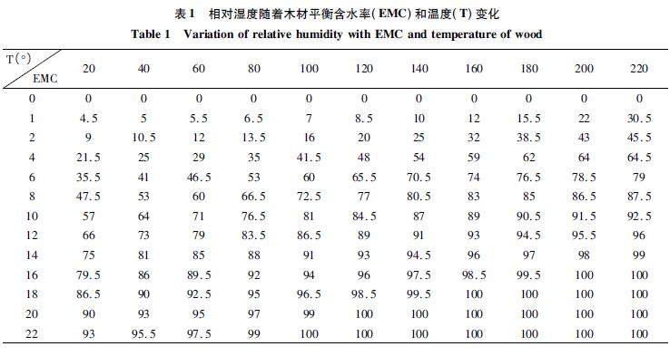 1影響纖維板熱壓過程因素—相對濕度影響纖維板熱壓質(zhì)量的因素很多,以熱壓溫度、熱壓壓力、熱壓時間、板坯含水率、板坯鋪裝質(zhì)量這五個因素為主。本文對纖維板熱壓過程中板坯的含水率這一影響因子展開研究,因?yàn)樵跓釅哼^程中,板坯的含水率是非常重要的因素,它直接影響到熱壓后產(chǎn)品的性質(zhì),如鼓泡、分層、翹曲、內(nèi)結(jié)合強(qiáng)度。由于實(shí)際生產(chǎn)中板坯含水率難以測量,因此希望借助于熱壓過程中的內(nèi)部溫度以及混合氣體相對濕度對其定性分析。根據(jù)文獻(xiàn)中的分析,由于假設(shè)纖維細(xì)胞和相鄰空隙之間處于吸濕解析平衡狀態(tài),控制容積內(nèi)的相對濕度可由對應(yīng)的溫度和平衡含水率確定,因此可以表示為φ=f(x,t),