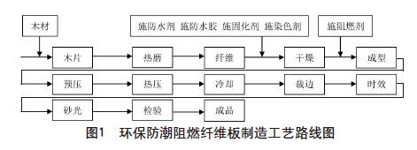 本環保防潮阻燃密度板采用制造工藝如下(圖 1):